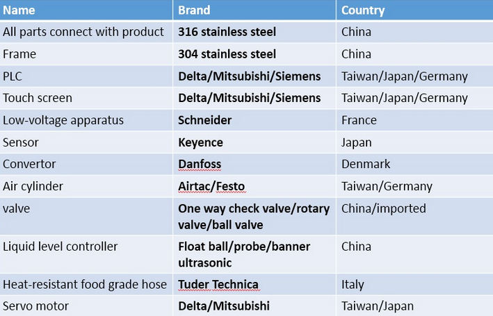3. Өніммен байланысқа түсетін барлық компоненттер 316 L тот баспайтын болаттан жасалған және CNC машиналарында өңделген.